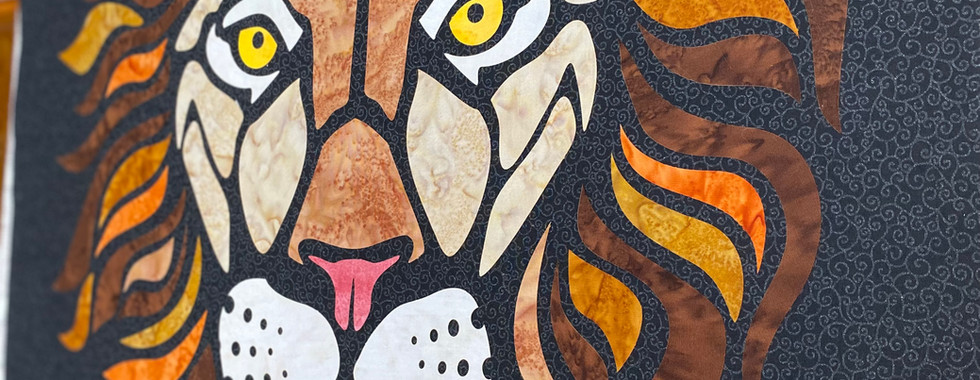 Here is a picture of the stencil that you iron onto your background fabric. I chose black with a subtle design due to it helping the colors of the lion pop. Once that is ironed on it's time to start placing the fabric where it belongs! The fabric comes in clumps and you will have to cut the pieces apart which isn't hard at all as they are just little tacks that keep them held together!