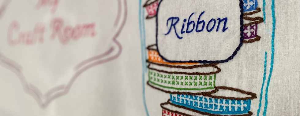 Let's begin with "My Craft Room" wall hanging quilt that if you remember is a hand embroidered project that is 3 foot by 3 foot that I started about two years ago and put it down after doing a small amount and picked it back up recently with the intention to finish it by the end of 2022. Well, I didn't reach that goal but that's okay! I am pleased to announce that I have FINALLY finished the embroidery part! YAY!!